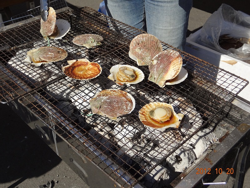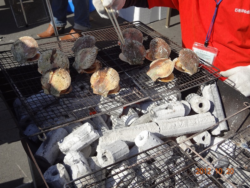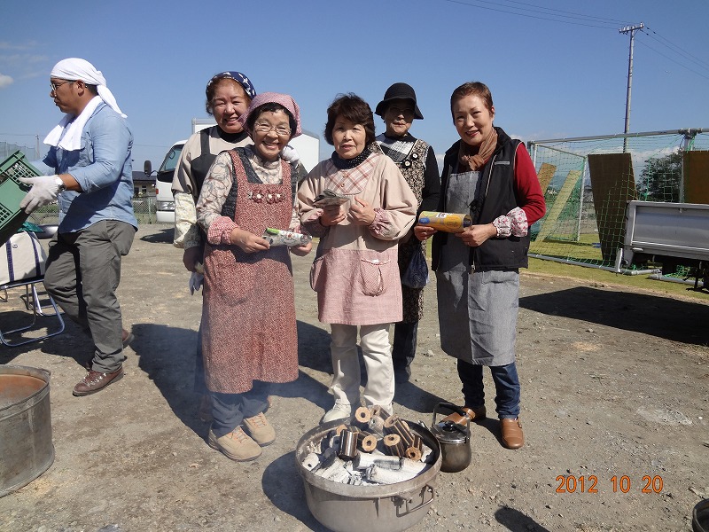 当日はホタテ焼き、女川町のサンマ、地元の美味しい豚肉、焼き鳥などすべての焼き物に「モミガライト」を使用しました。