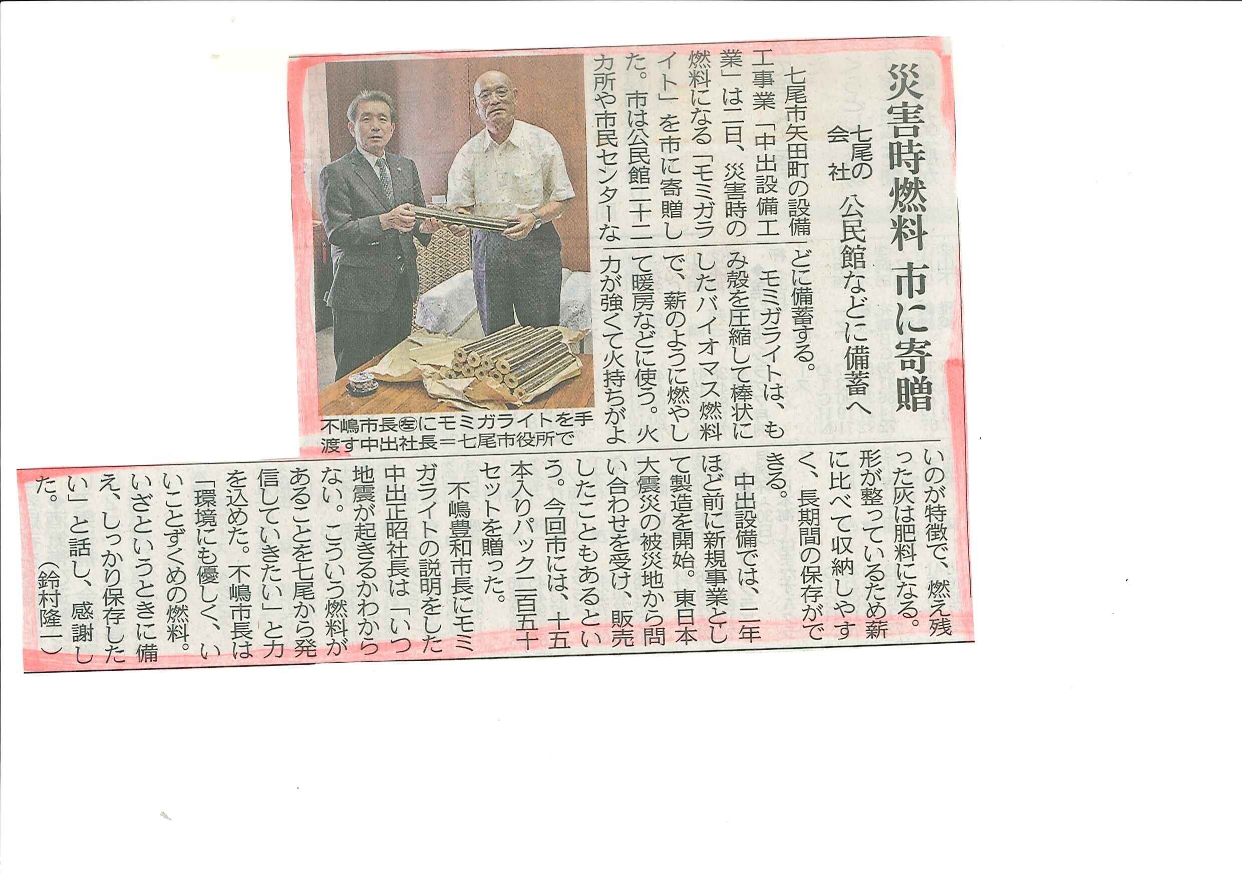 意外な事ですが、自治体の行政が非常用備蓄燃料として、モミガライトを配備されるのは全国で初めてです。