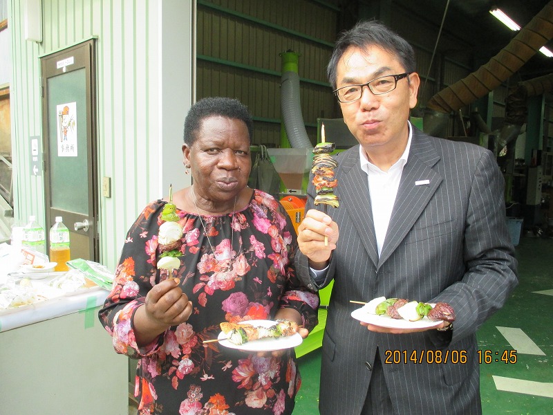 もみ殻固形燃料モミガライトは大使にとって興味深いものだと、説明した私達に伝わってきました。