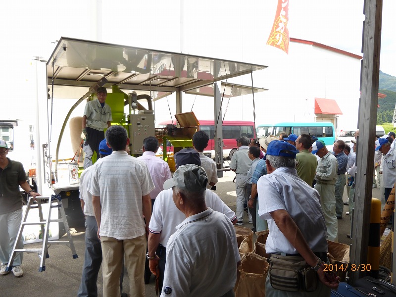 昨年に続いての2度目のデモでしたが、初めてグラインドミルの運転を見られた組合員さんは、「安けりゃオレが買うんだけどな・・・」と。