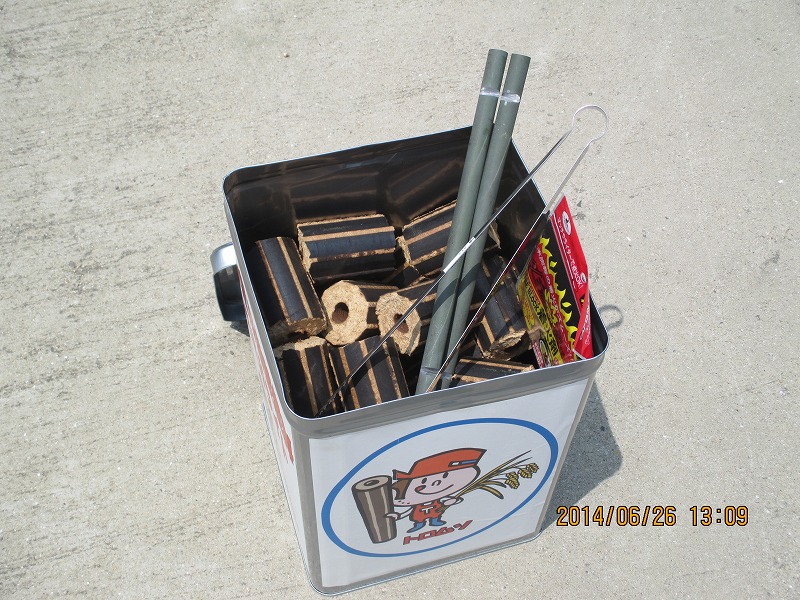 火バサミも、何やらこれは着火剤でしょうか?そうですホームセンターなどで売ってる着火剤です。