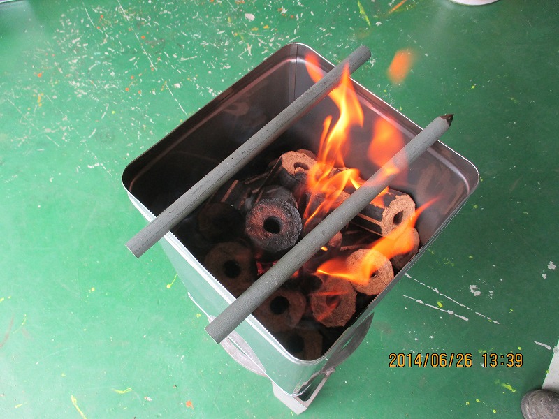 2本の鉄筋棒を一斗缶の両淵にかけて、ヤカンやお鍋が安定するように・・・・。