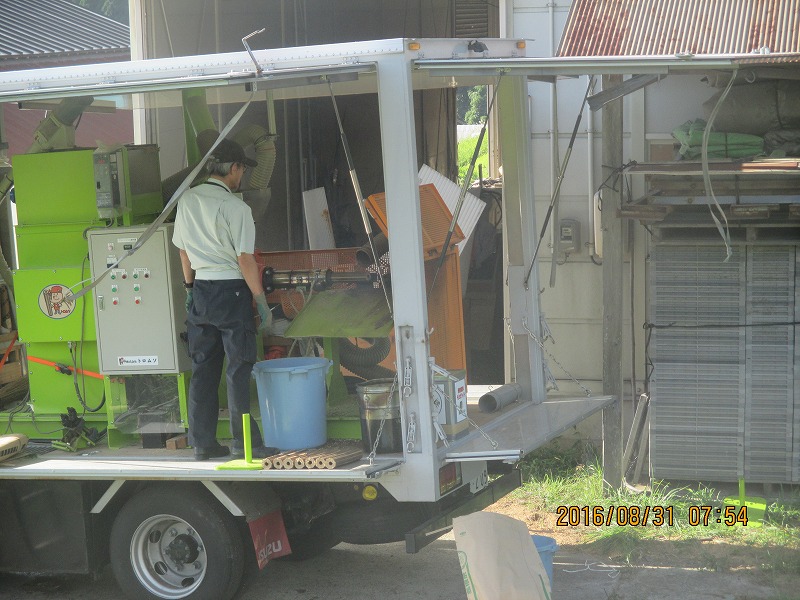トロムソ号で駆けつけて、モミガライト製造やすり潰しもみ殻を作りました。