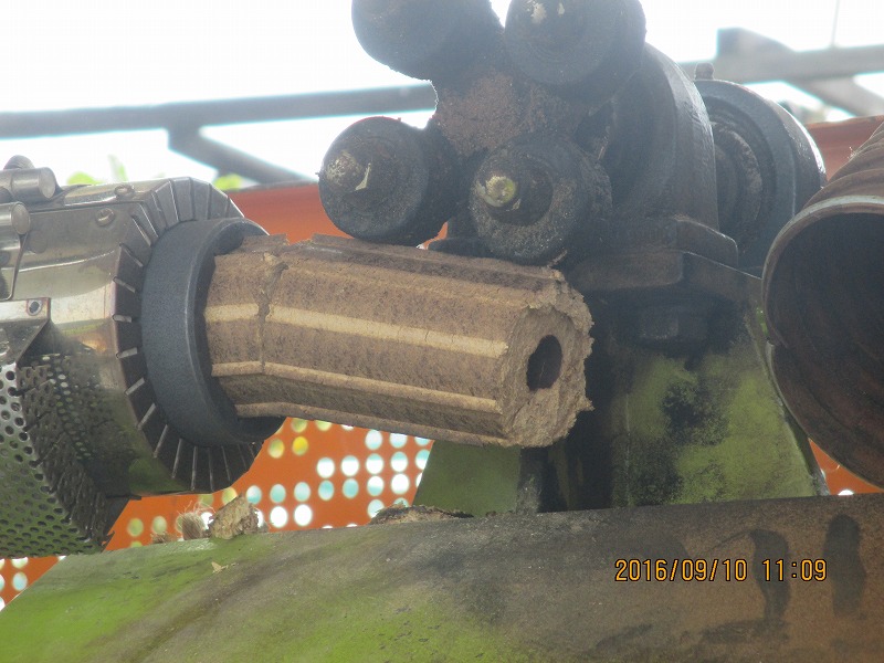 非常用備蓄燃料【いっとかん】に入れるモミガライト製造実演を行ないましたが、「あっ、オガライトだ・・・」