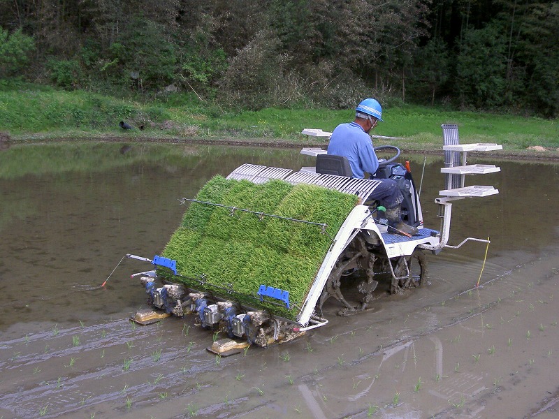 市販の培土を使わずに、「もみ殻」をすり潰して、立派な保水材・吸水材に変え、「培土」となって、水稲用苗を育て、こうして楽しく田植えをすることが出来ます。