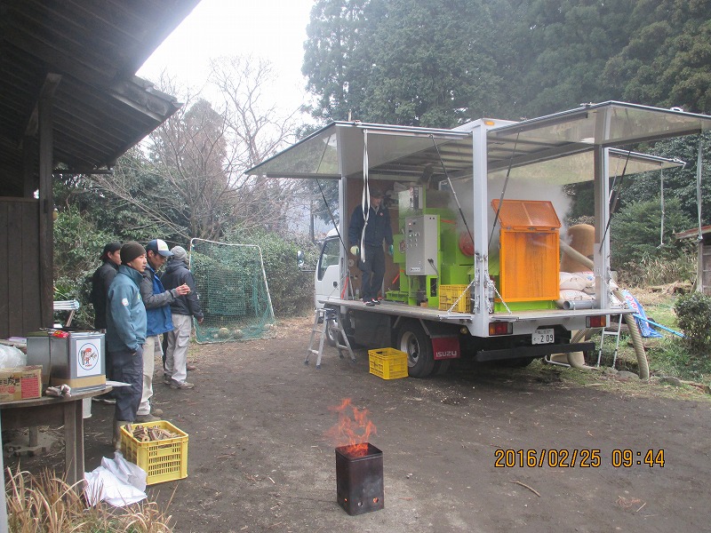 実は震災発生前の2月、トロムソでは、南阿蘇村の稲作農家の皆さまに、「もみ殻の利活用」のデモを行なっていました。
