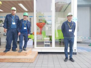 の地元開催ですので実機を展示しようということになりまして、部品ごとに現地に持ち込みまして展示場所でグラインドミルの